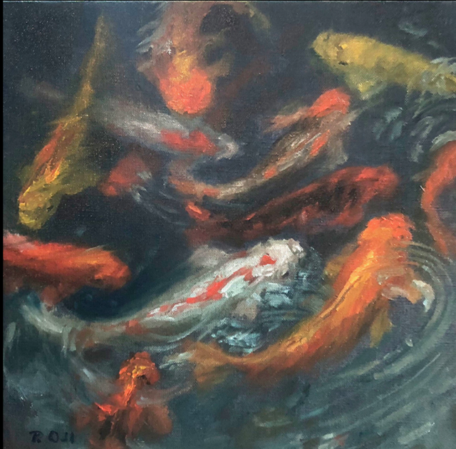 I like to show how the rhythm and patterns of life reveal themselves in a contemporary way. My goal is to stimulate the imagination of the viewer. In addition to exploring perspsective, I stay open to and embrace any changes that may unexpectedly appear in my work. This year I've created fresh impressions by painting with my non-dominant hand.