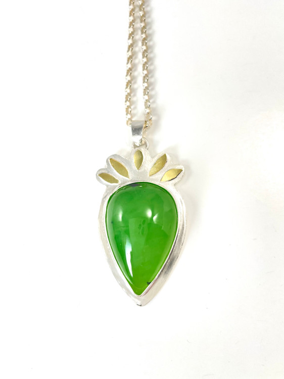 Sterling silver and Jadeite pendant with 18K bi metal accents on a 18-inch sterling silver chain.